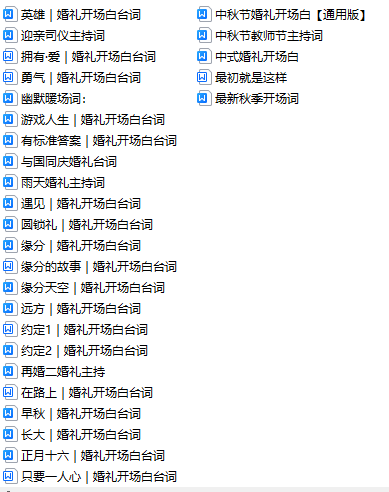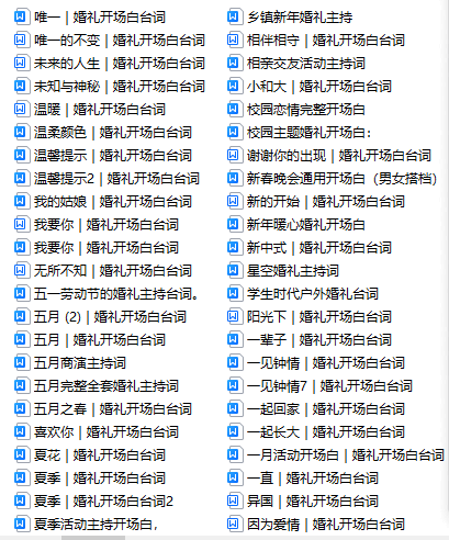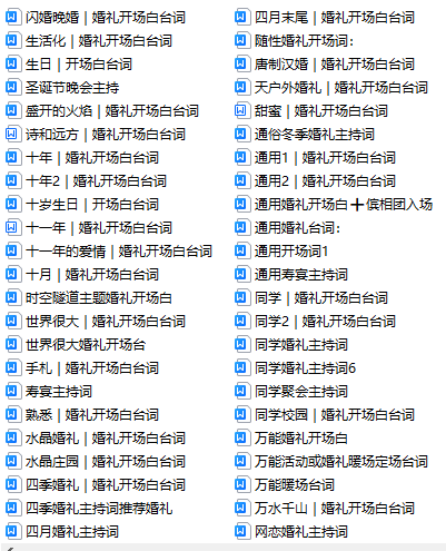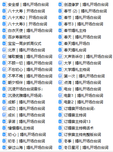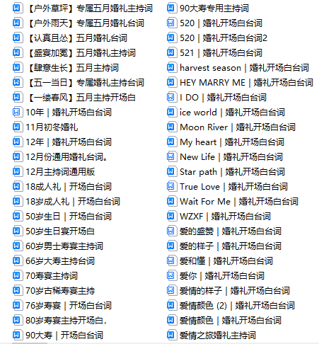 说明:以上共365篇各种主题和场景的主持开场白台词,包括各种商演开场白台词,详情请看上方截图展示,(注:都是开场白、无音乐)拒绝烂大街,拒绝老掉牙...仅售价:79.9元..