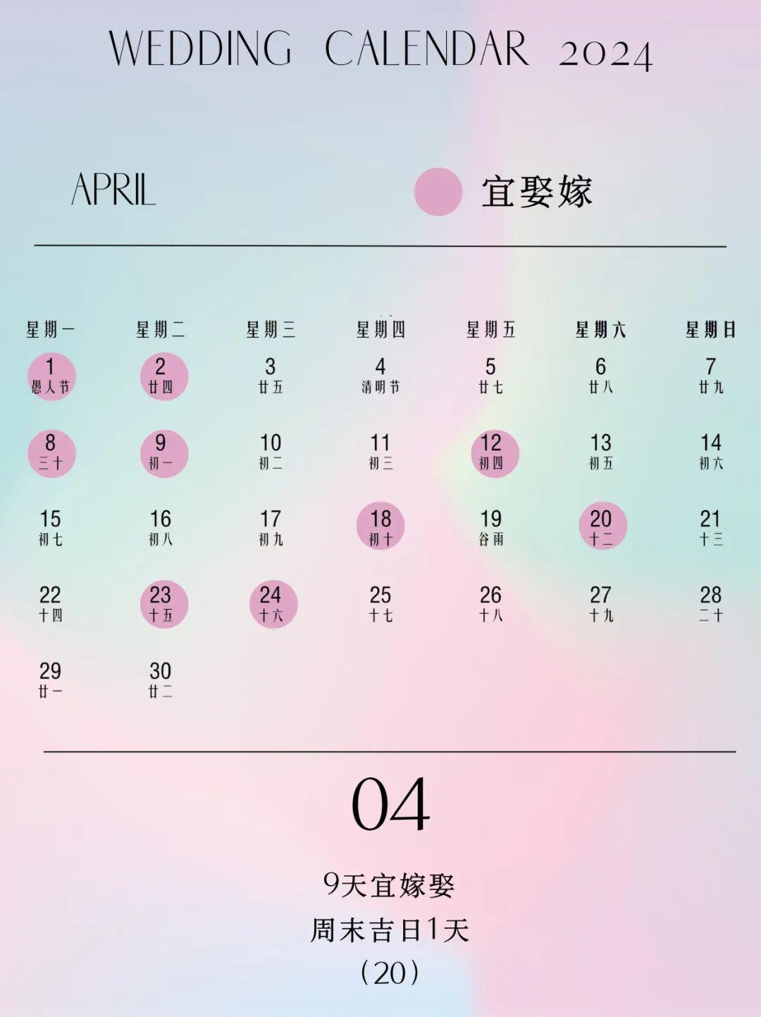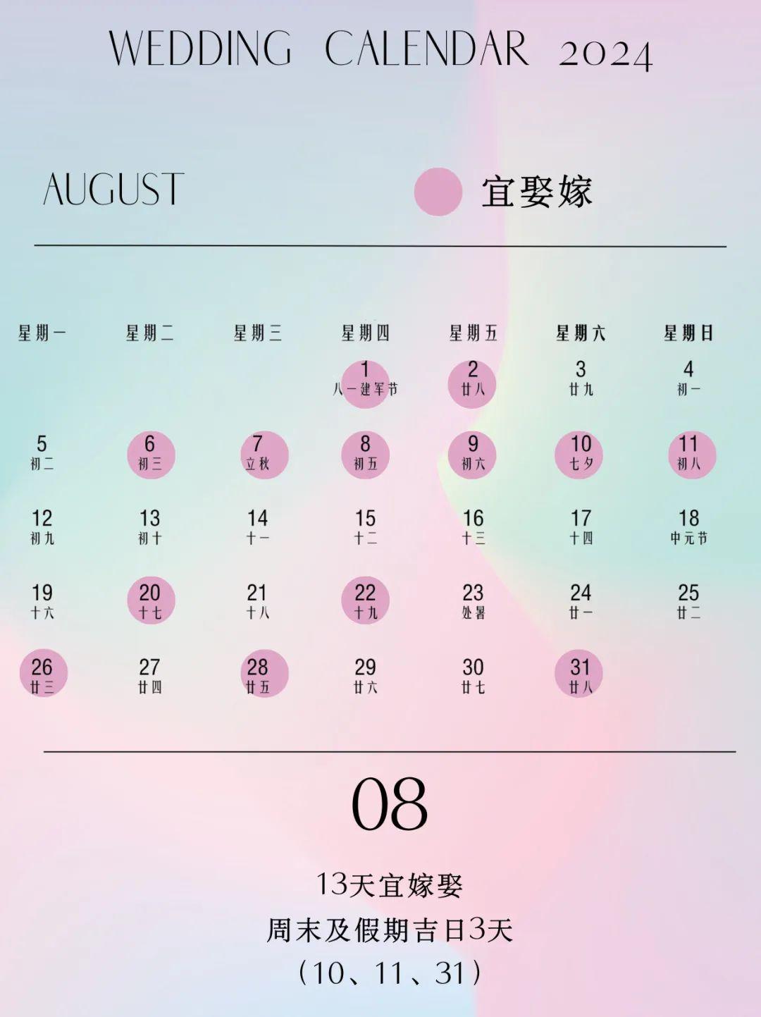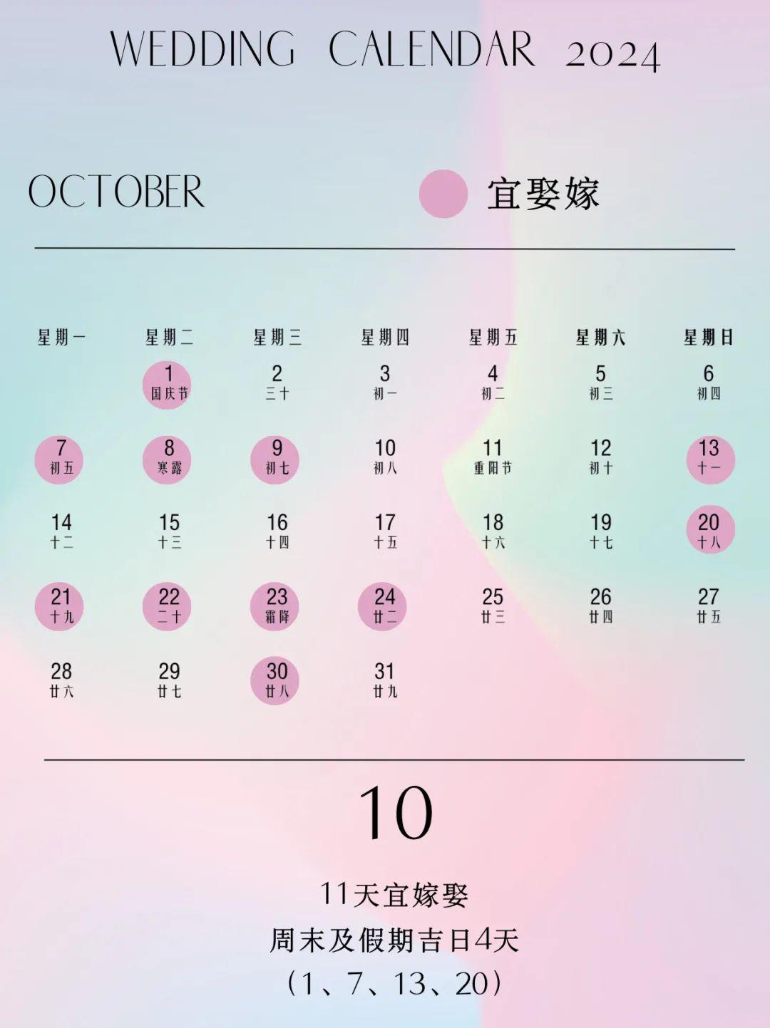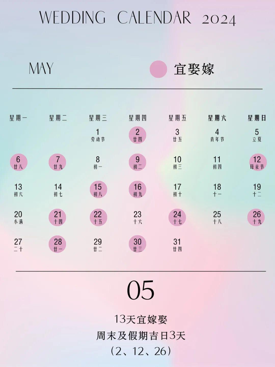2023年即将过去,赶紧来看看《2024年的结婚黄道吉日》,现在开始关注,可以让你的抢到最佳的婚礼档期~