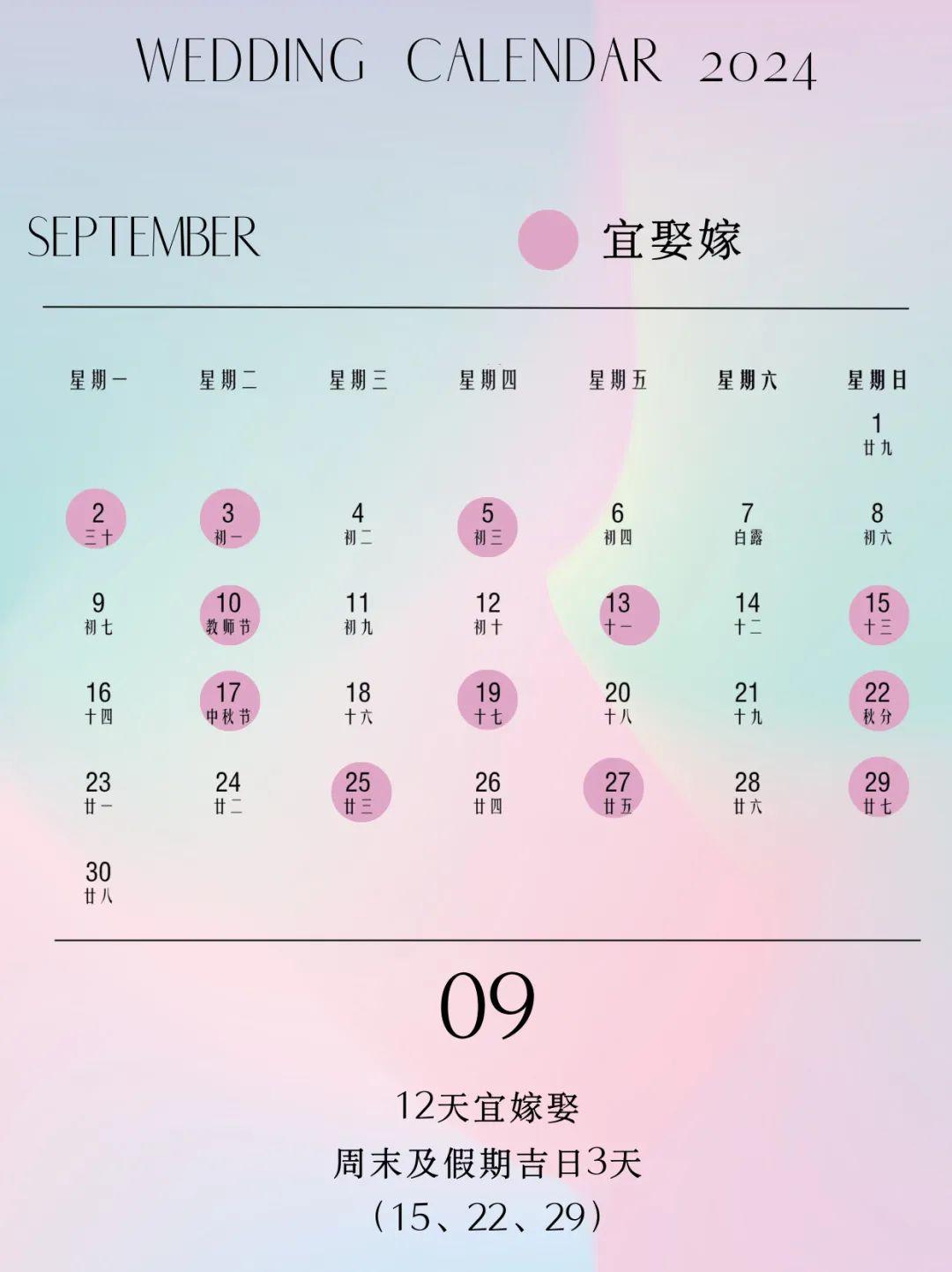 9+10月吉日共22天,其中在周末的吉日有5天。