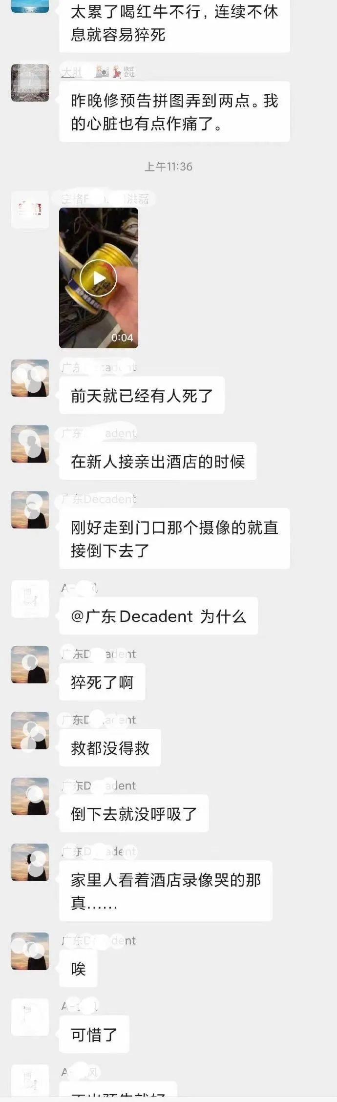 13.还有婚庆同仁说:十月的高强度工作导致每天睡眠不足五个小时,站着就能晕倒的那种,辛苦只有自己知道,现在工作量增加,要求越来越高,工资越来越低,婚礼人哪个不是工作十六七个小时以上的。致敬婚礼人,致敬死者!
